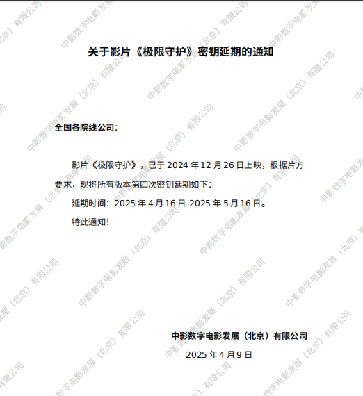 《极限守护》第三次密钥延期的通知