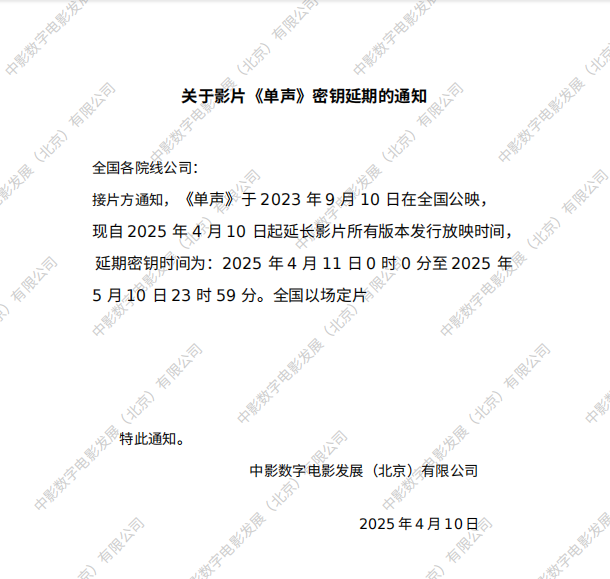 《单声》第二十二次密钥延期的通知