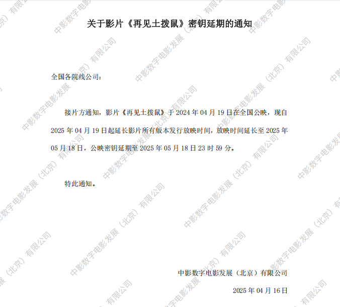 《再见土拨鼠》调整票房结算标准的通知