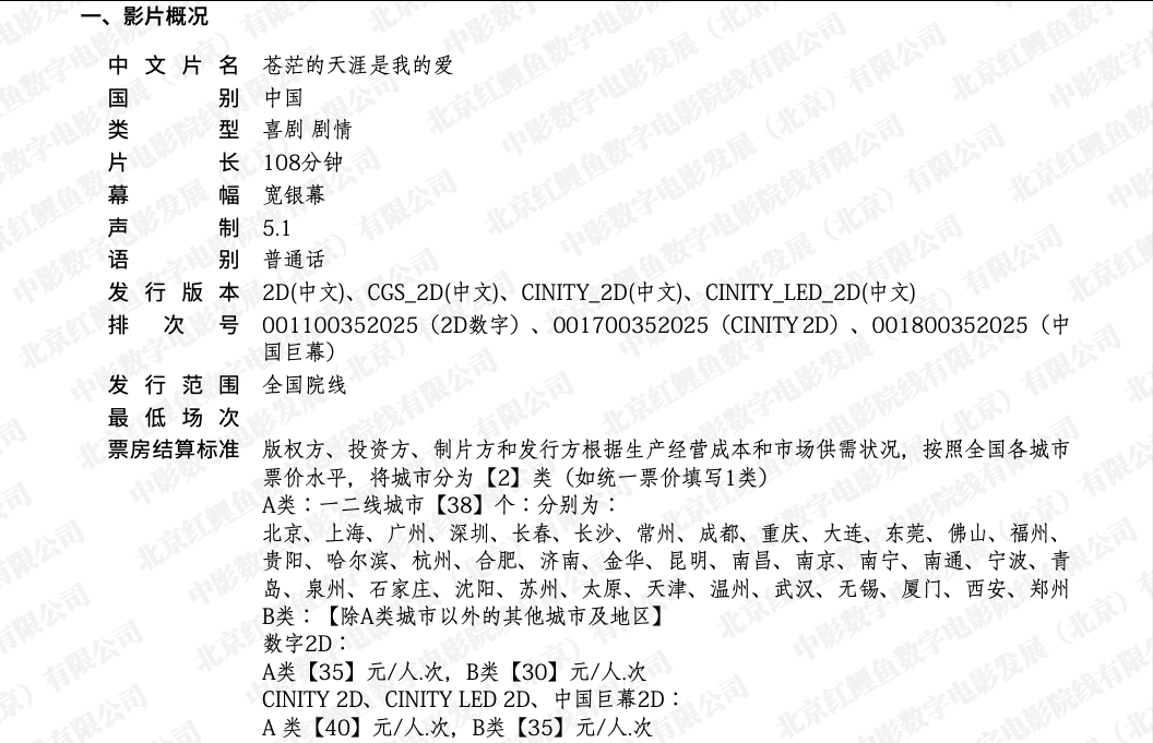 《苍茫的天涯是我的爱》调整票房结算标准的通知