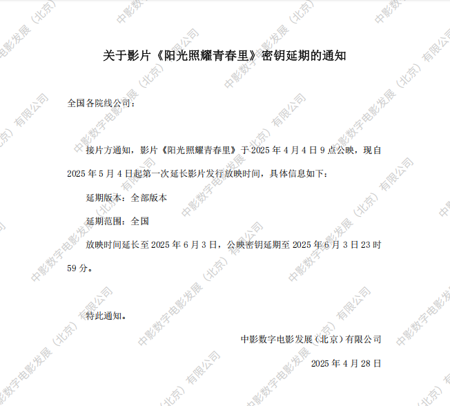 发行通知 » 《阳光照耀青春里》密钥延期的通知