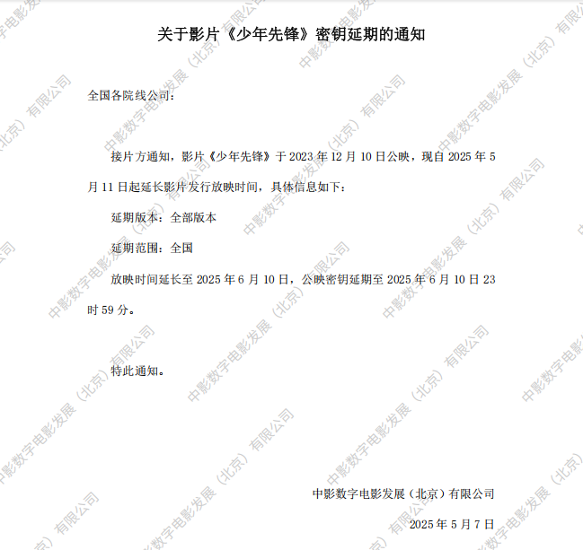 《少年先锋》第二十一次密钥延期的通知