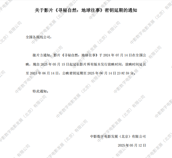 《寻秘自然:地球往事》调整票房结算标准的通知