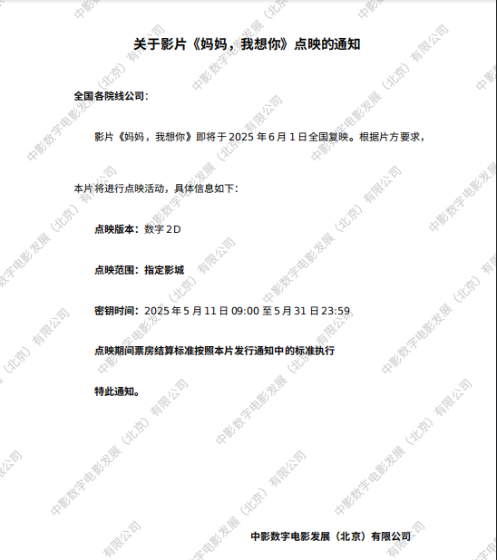 《妈妈,我想你》第二次密钥延期的通知