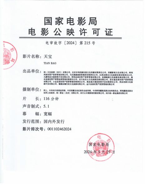 联合出品:西藏影视文化有限公司、阿坝州国有资产投资管理有限公司、马尔康嘉绒投资集团有限责任公司、红原县雅克文化旅游发展有限责任公司、九寨沟县文旅投资开发有限公司、阿坝县国有资产投资管理有限公司、松潘岷鼎文化旅游发展有限公司、黑水县国有资产投资经营管理有限责任公司、汶川县汶山文化旅游发展有限公司、若尔盖县国有资产投资管理有限公司、小金县国有资产投资管理有限责任公司、理县城乡建设投资开发有限责任公司、茂县羌泰文化旅游开发有限公司、壤塘县壤巴拉文化旅游有限公司、金川县国有资产投资管理有限公司