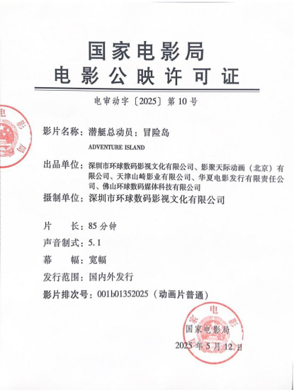 出 品:深圳市环球数码影视文化有限公司、影聚天际动画(北京)有限公司、天津山崎影业有限公司、华夏电影发行有限责任公司、佛山环球数码媒体科技有限公司