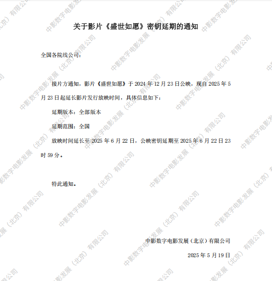 《盛世如愿》第十次密钥延期的通知