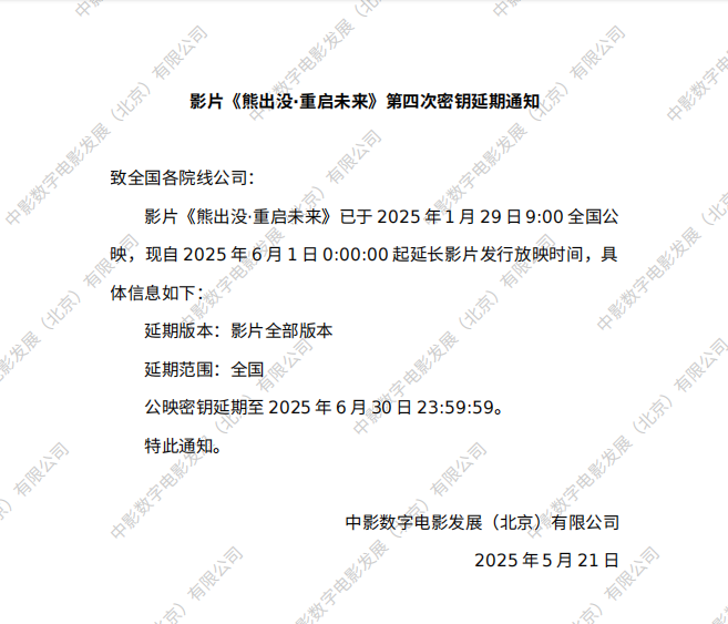 《熊出没·重启未来》第二次密钥延期的通知