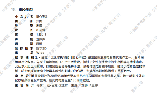 我公司即将在全国艺术电影放映联盟指定加盟影院发⾏《2025全国艺联主题影展活动》,此次活动共涉及14部影片,