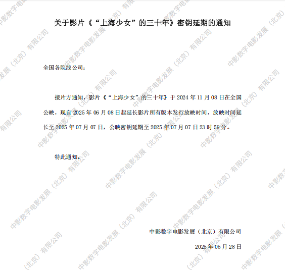 《“上海少女”的三十年》第十三次密钥延期的通知