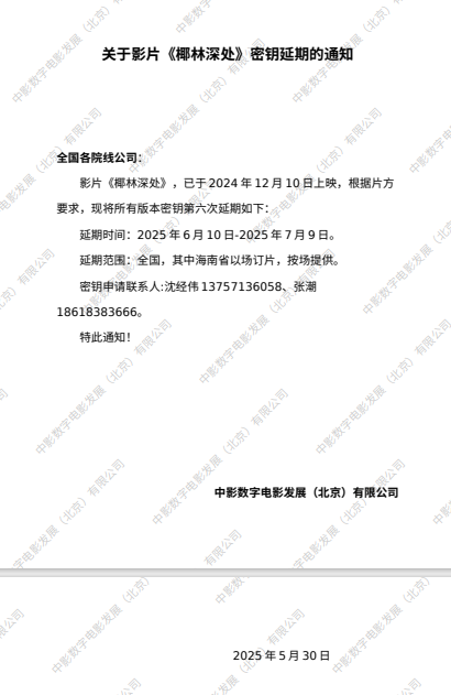 《椰林深处》第五次密钥延期的通知
