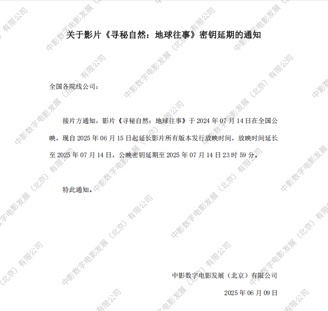 《寻秘自然:地球往事》调整票房结算标准的通知