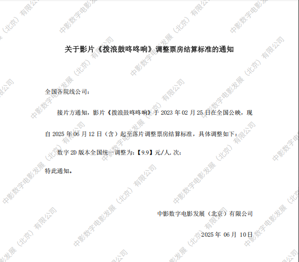 《拨浪鼓咚咚响》调整票房结算标准的通知