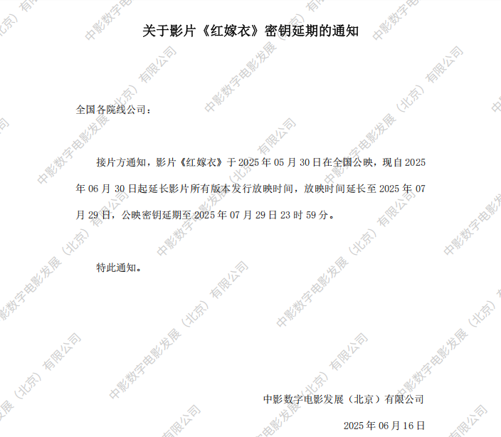 发行通知 » 《红嫁衣》密钥延期的通知