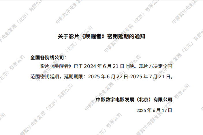 关于影片《唤醒者》密钥延期的通知