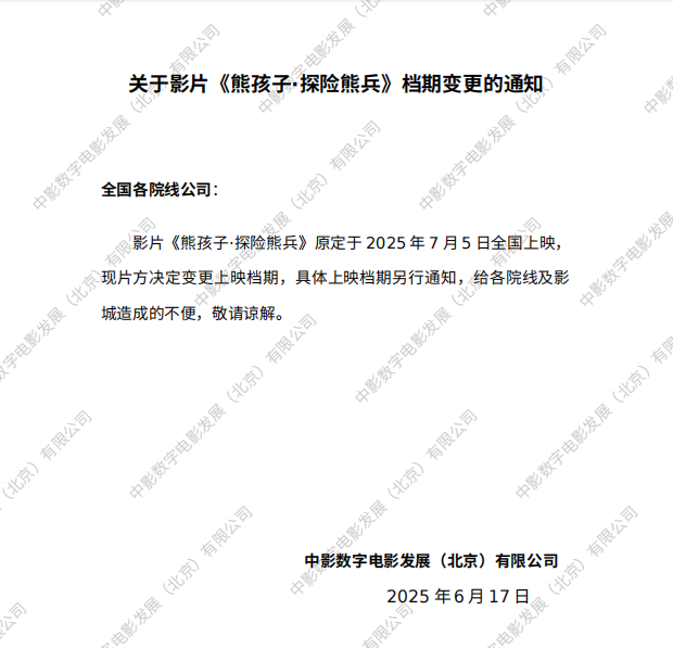 关于影片《熊孩子·探险熊兵》第一次密钥延期的通知