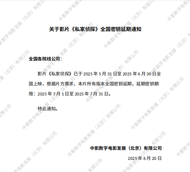 发行通知 » 《私家侦探》全国密钥延期的通知