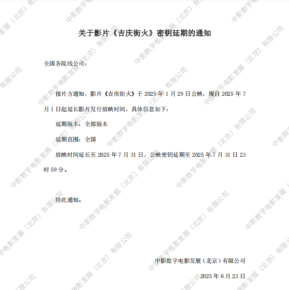 《吉庆街火》第十二次密钥延期的通知