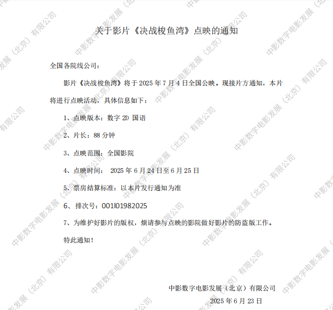 关于影片《决战梭鱼湾》第二次全国密钥延期通知