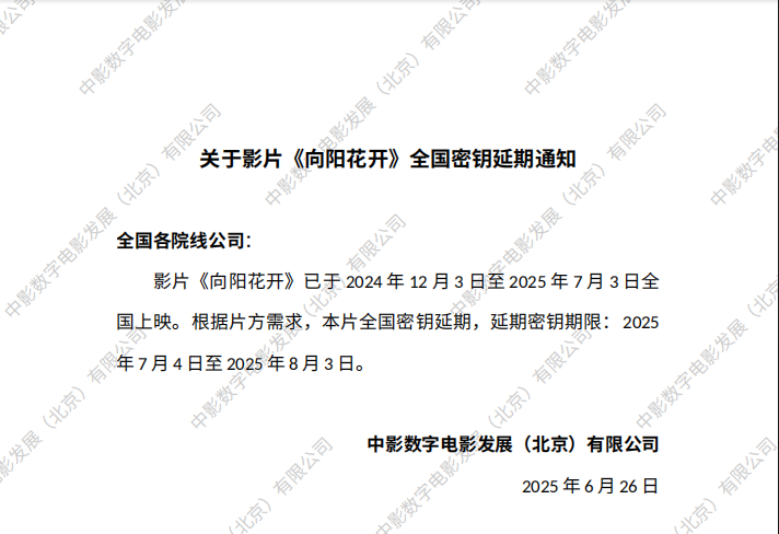 关于影片《向阳花开》全国密钥延期通知 (2)