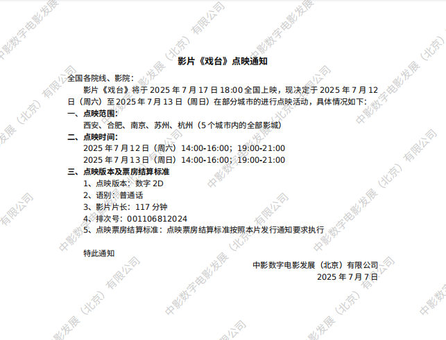 发行通知 » 《戏台》点映的通知