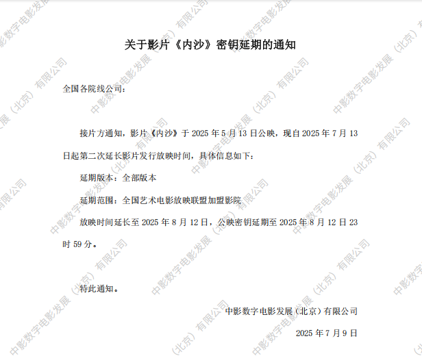 《内沙》第三次密钥延期的通知