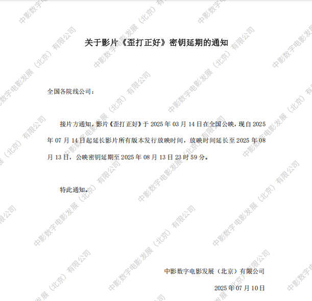 《歪打正好》第二次密钥延期的通知