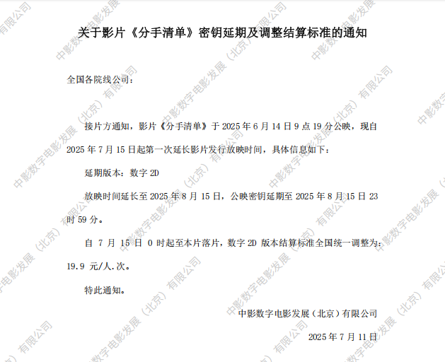 发行通知 » 《分手清单》密钥延期及调整结算标准的通知