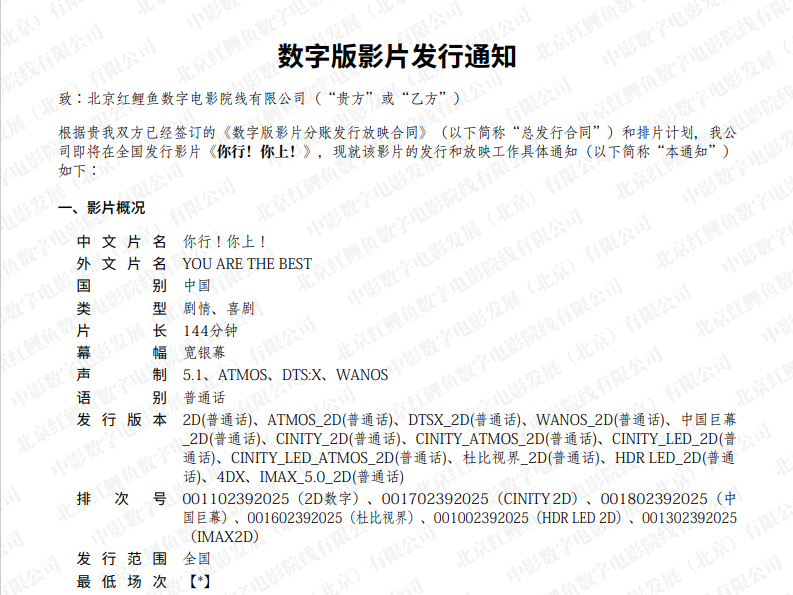 电影《你行!你上!》发行通知