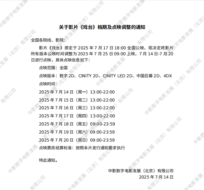影片《戏台》变更点映信息通知