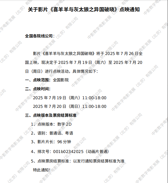 《喜羊羊与灰太狼之异国破晓》发行通知