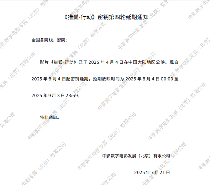 《猎狐·行动》密钥延期的通知
