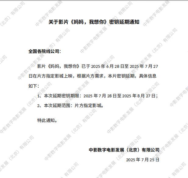 《妈妈,我想你》第二次密钥延期的通知