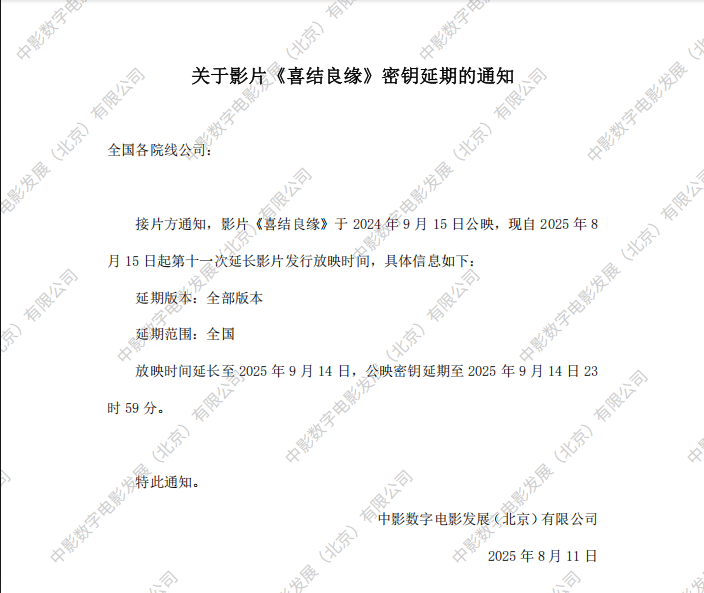 《喜结良缘》第十次密钥延期的通知