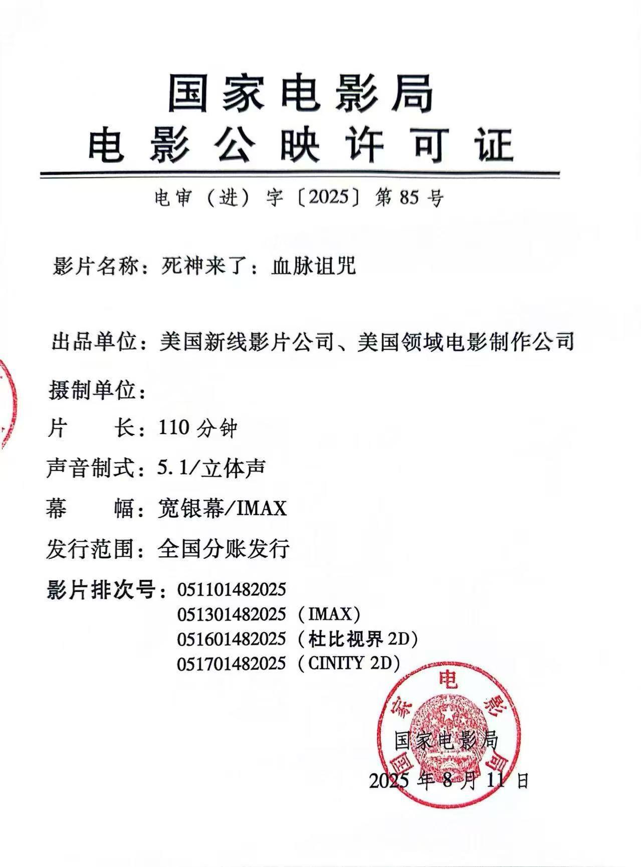 【延期至2025年11月22日】《死神来了:血脉诅咒》数字版影片发行通知-中影乙区