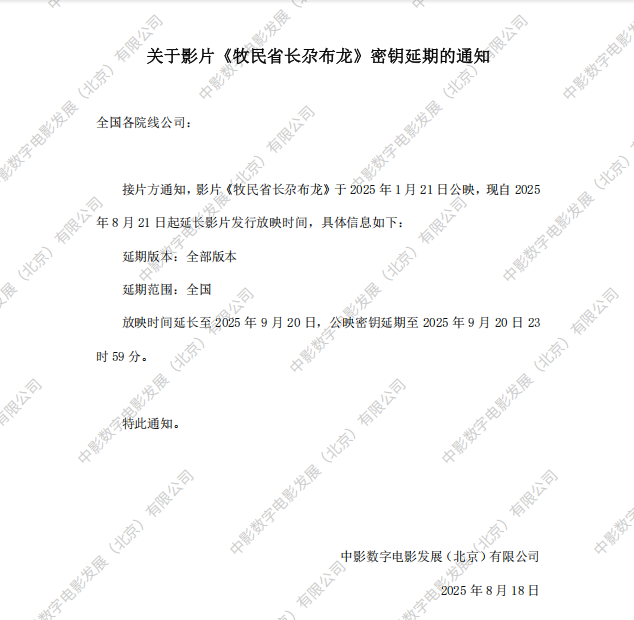 《牧民省长尕布龙》第十次密钥延期的通知