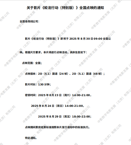 《熊猫计划之部落奇遇记》调整票房结算标准的通知