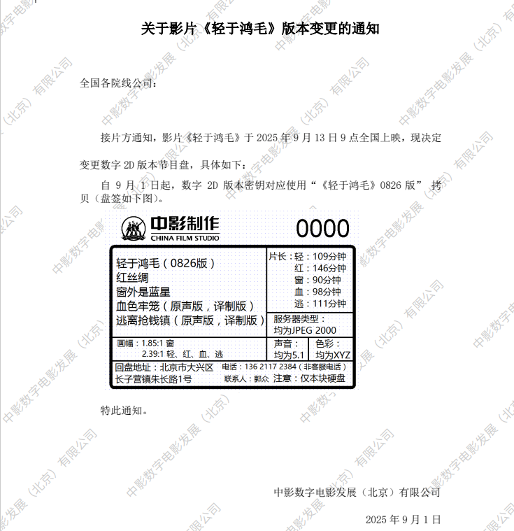 《轻于鸿毛》发行通知