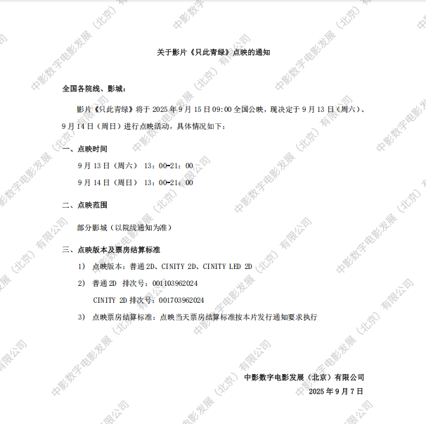 《只此青绿》调整票房结算标准的通知