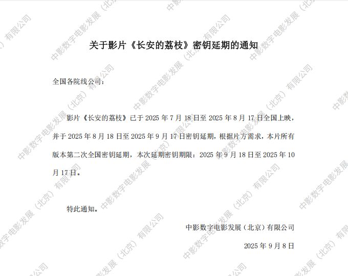 《长安的荔枝》密钥延期的通知
