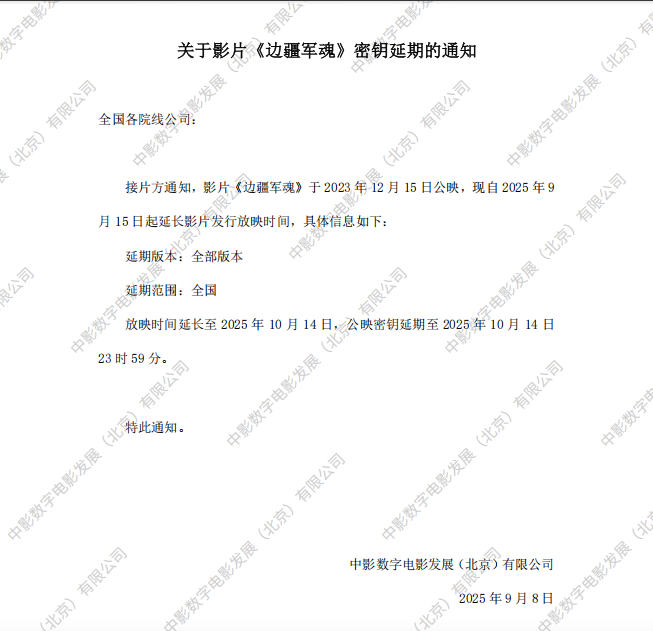 《边疆军魂》第二十五次密钥延期的通知