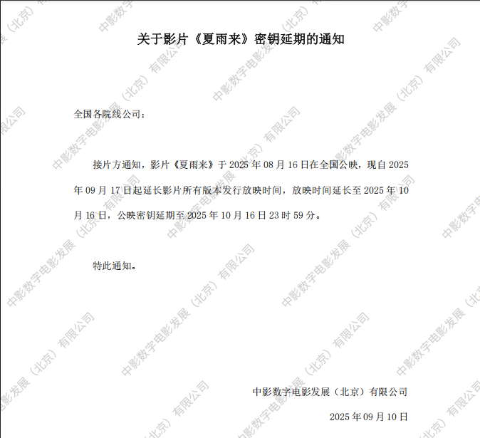 发行通知 » 《夏雨来》密钥延期的通知