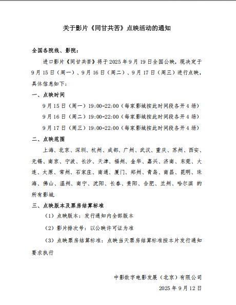 《同甘共苦》点映活动的通知