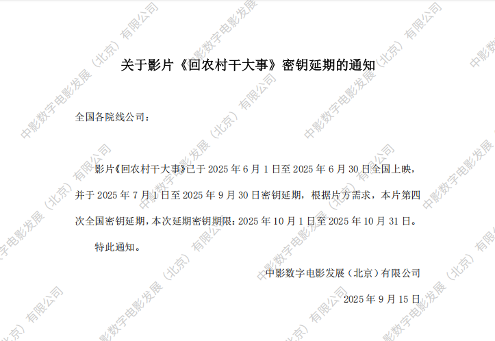 《回农村干大事》第八次全国密钥延期的通知