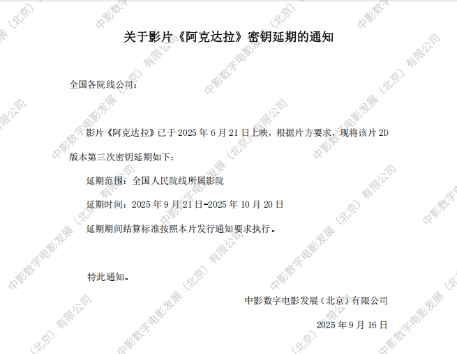 《阿克达拉》第二次密钥延期的通知