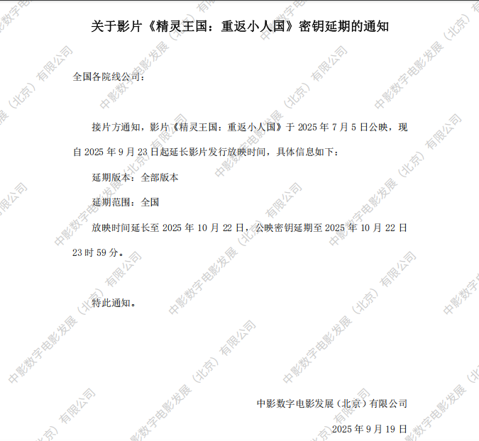 《精灵王国:重返小人国》调整票房结算标准的通知