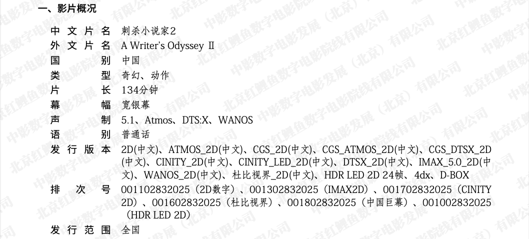 关于影片《刺杀小说家2》调整结算标准的通知