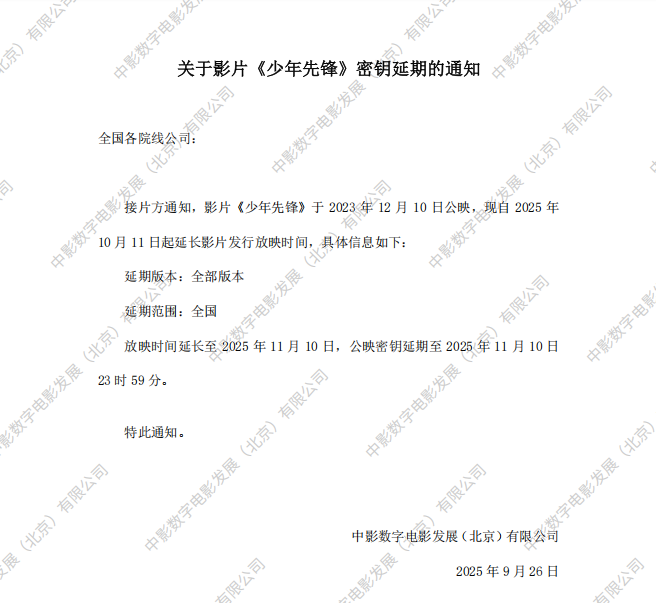 《少年先锋》第十六次密钥延期的通知