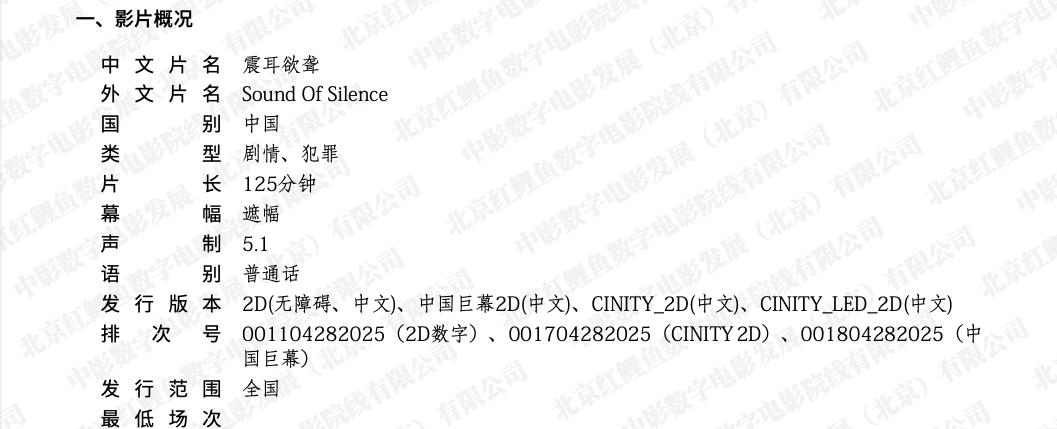 关于影片《震耳欲聋》调整票房结算标准的通知