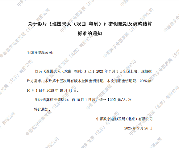 发行通知 » 《谯国夫人(戏曲 粤剧)》第十五次全国密钥延期的通知